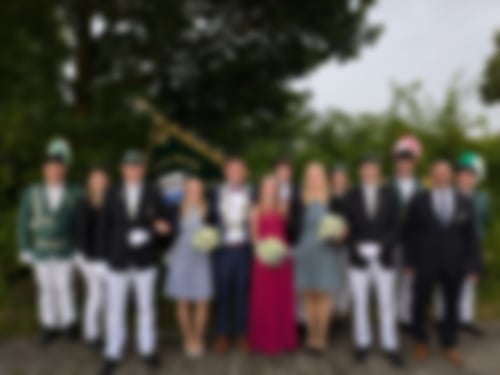 Von Links: Feldwebel Marcel Nienau, Fahnenträgerin Julia Niehoff, Adjutant Daniel Witte, Ehrendame Marie Daldrup, König Frank Daldrup, Königin Emma Quante, Fahnenträger Lukas Hüning, Ehrendame Josi Ahlers, Fahnenträgerin Franziska Daldrup, Adjutant Luis Mennigmann, Oberst Christoph Wiesmann, Vizepräsident Norbert Daldrup und Hauptmann Christoph Hölker.
